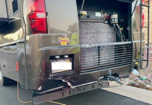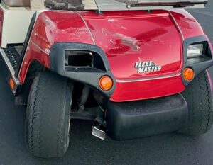 In an unusual accident in Unit 1, a Bobcat darted out from a side yard and into the street in front of a woman driving a golf cart causing her to lose control and ram into a parked RV. Fortunately, the cart driver was not injured in the crash. The golf cart received front end damage and the RV incurred a large dent in the rear facade.